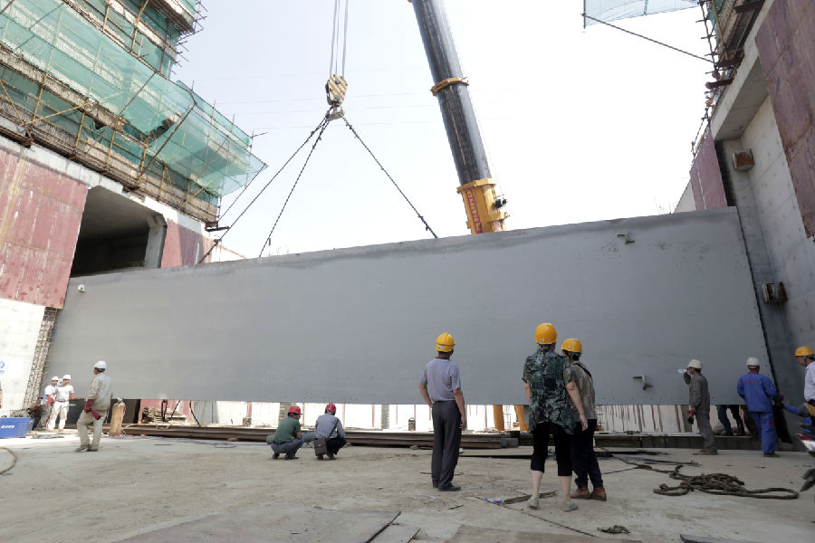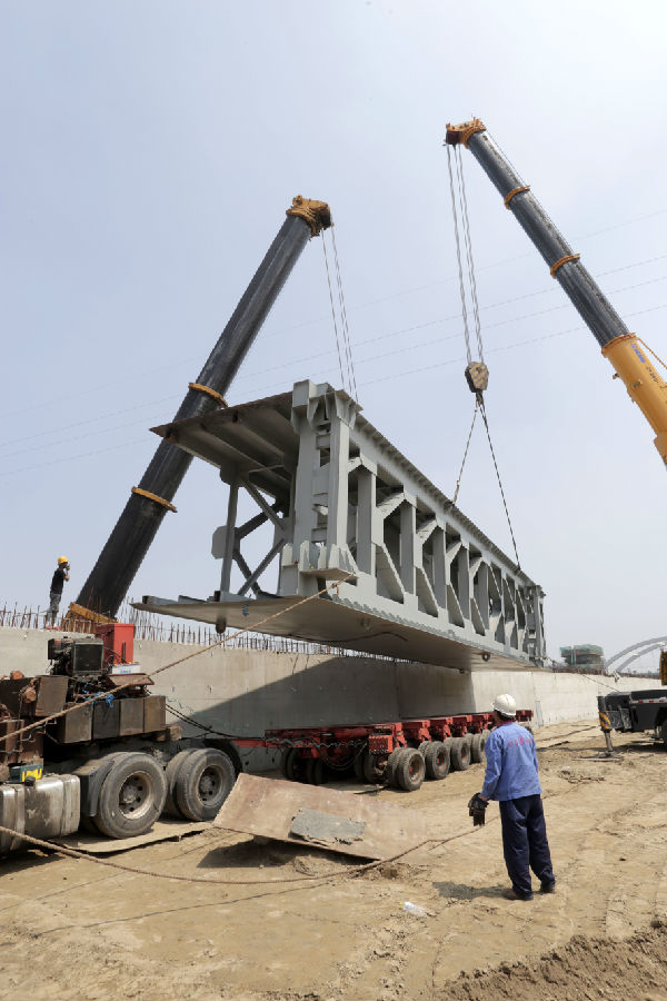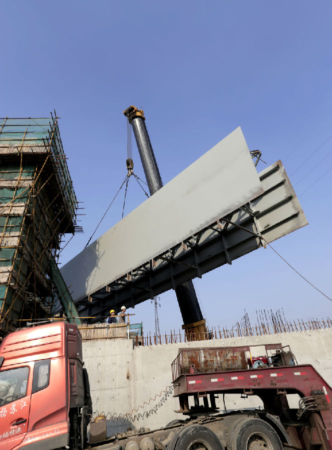 6月17日,由水機公司承建的芒稻閘項目上閘首閘門吊裝成功。閘門分兩片,單片重70噸,運輸、吊裝難度非常大,為此,水機公司組織精兵強將,認真查看運輸線路、吊裝位置,制定切實可行的預案。吊裝現(xiàn)場,隨著指揮哨聲的響起,兩輛運送閘門的大型平板汽車駛入指定位置,一臺500噸和一臺200噸的汽車吊緊密配合將閘門起吊、進行空中轉體、側向移位、斜插門庫就位一氣呵成,猶如體操運動員精準完美的表演。目前,下閘首閘門已完成制作進入防腐階段。